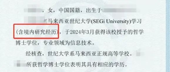 适用于参与双学位项目、跨国联合研究、以及在国内进行科研实习的留学生。这一标注在马来西亚等国的学历认证中已有所体现。