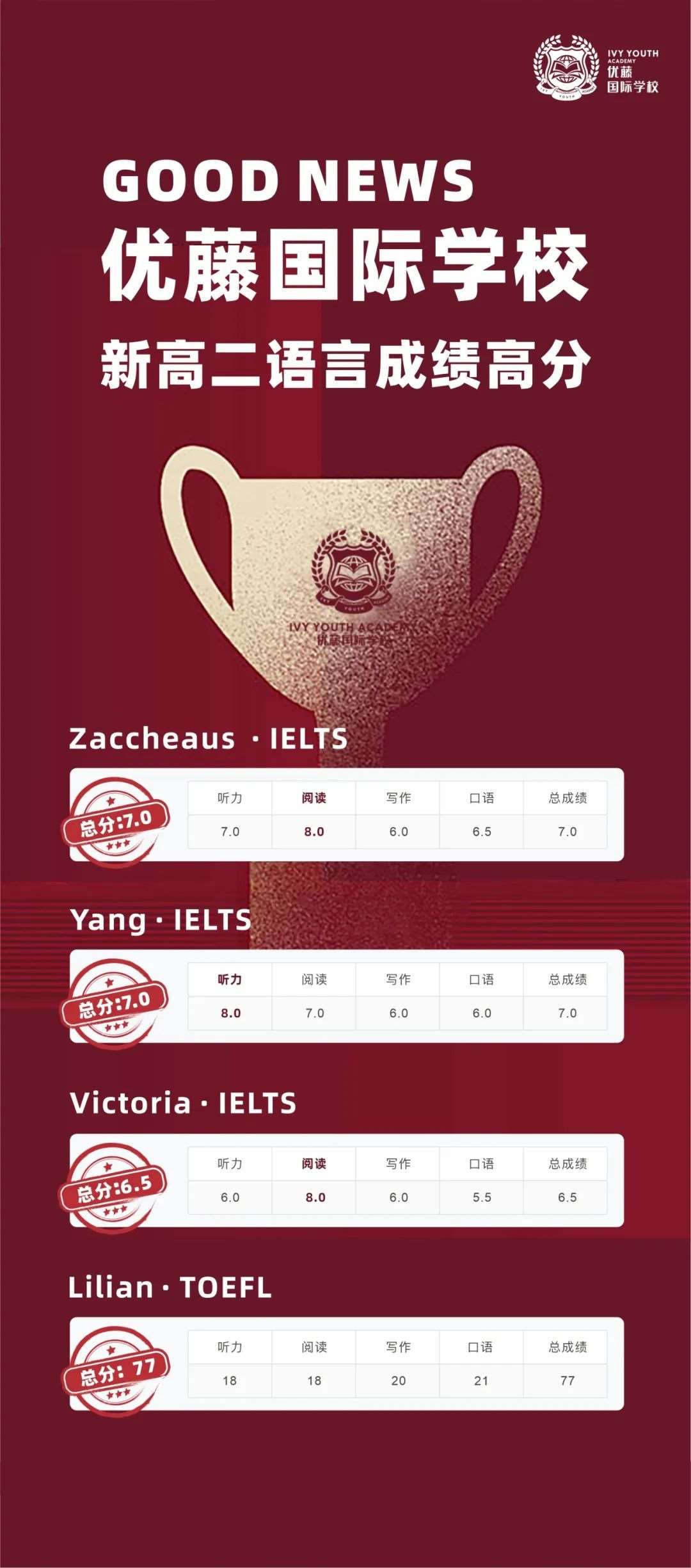 秋风不仅带来了凉爽与宁静,还携着一份沉甸甸的喜悦,为这个季节增添了几分温馨与骄傲。在这个充满收获与成长的时刻,四位学子仅在优藤一年的英语学习后,拥有了雅思与托福令人意想不到的*。特别值得一提的是,优藤的学生们,在不参加任何课外语言培训的情况下,能够获得这样的*已经非常难得。