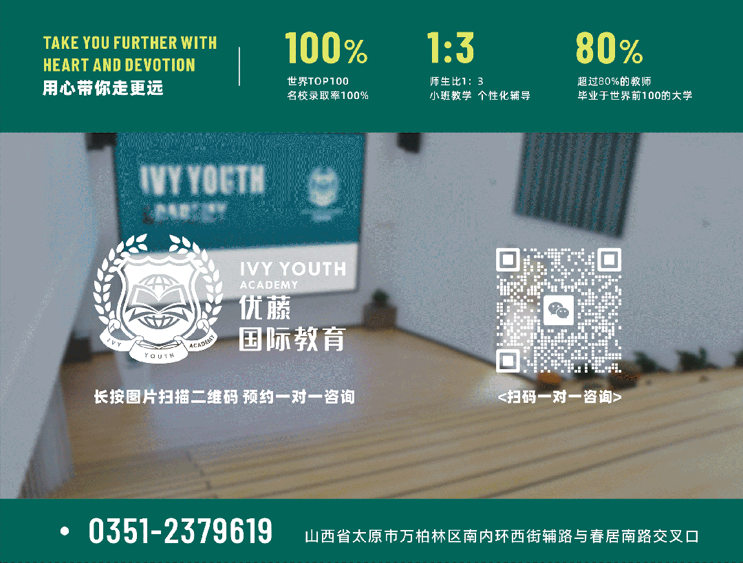 优藤国际教育中心(lvyYouth Academy),是山西真正融合国内外优质教育资源,由吴佩娟女士领导并打造的一支具备专业素养和丰富经验的升学指导教育团队,经过近10年研究总结,针对山西学子特点共同赋能的海外课程中心。