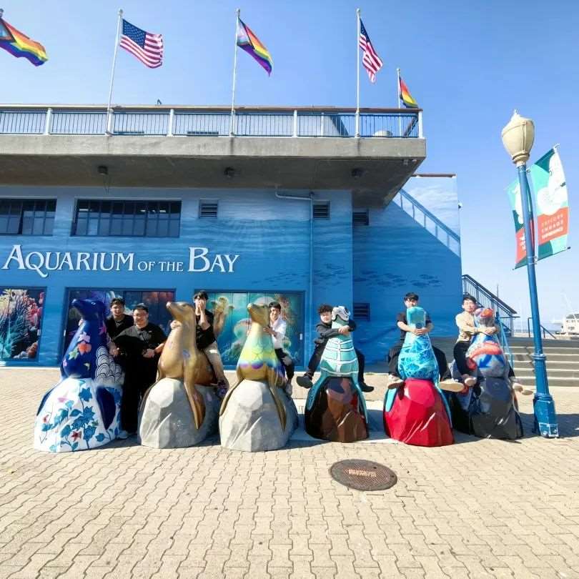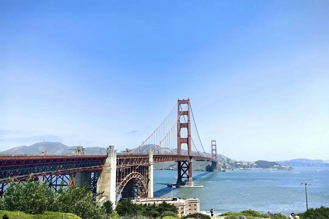 在充实的学习之余,同学们也充分感受了身处城市的艺术文化。穿梭于城市之间,探寻旧金山的文化底蕴。来到金门大桥时,正值太阳落山,夕阳透过大桥的间隙洒向海面,波光粼粼。日暮渐垂,余晖仍在,金门大桥两岸亮起星光点点。大家纷纷用相机记录下这一刻,并把美好的回忆留在心中。