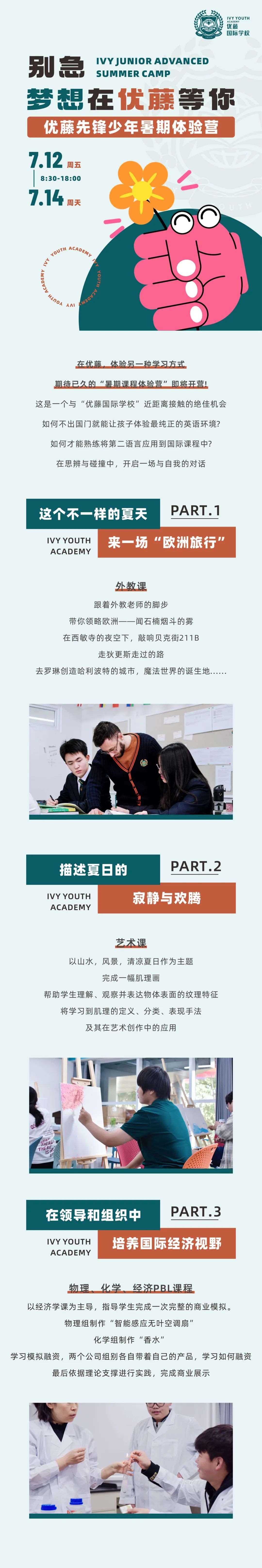 随着中考的结束,自23号起,众多学生及家长纷纷投入到了解学校和填报志愿的繁忙工作中。为了协助学生们明确自身是否适合国际教育道路,我们计划在这个暑假为14-18岁的学生举办先锋体验营。通过为期三天的体验活动,我们将帮助孩子们深入了解国际教育与国内应试教育的差异,从而判断他们是否适合入读国际高中。