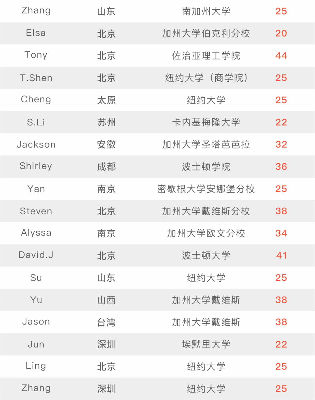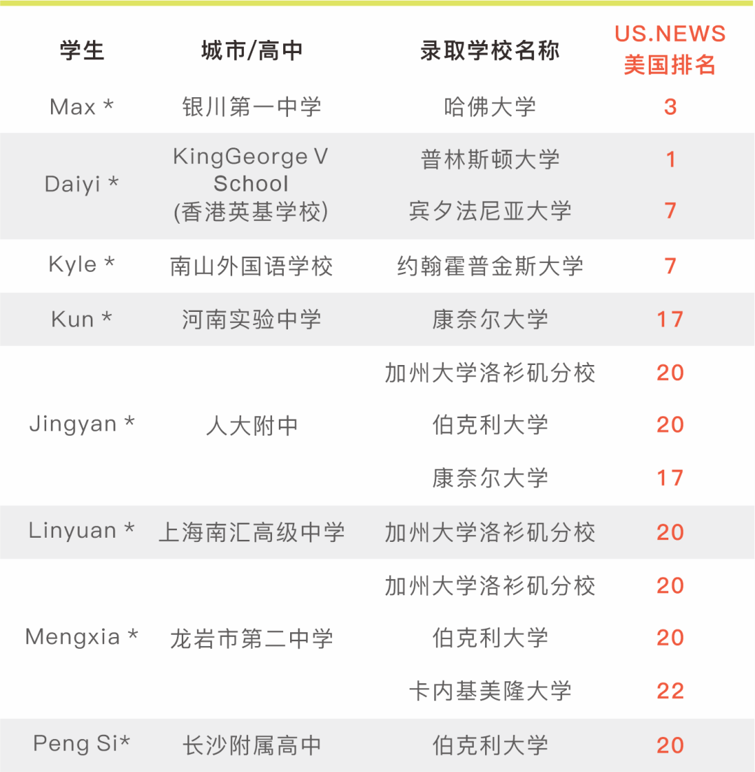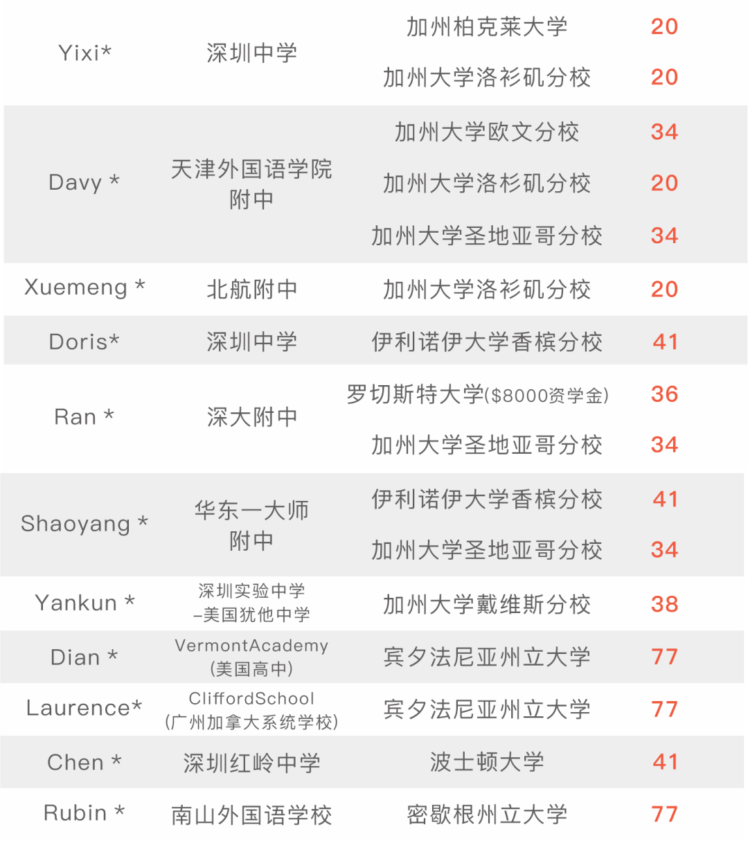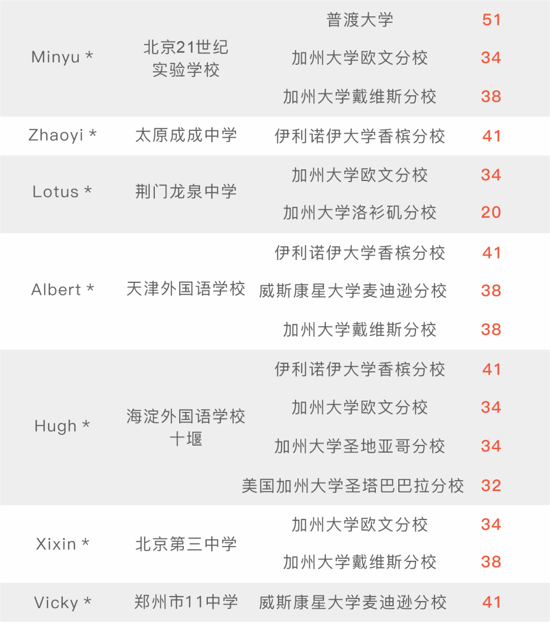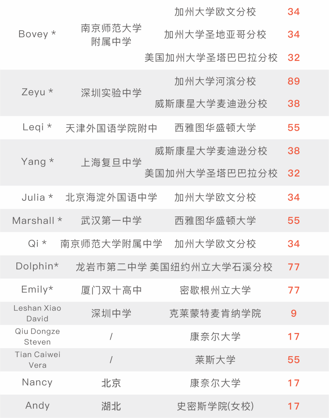 创始人及团队往届部分省市毕业生录取结果(部分)