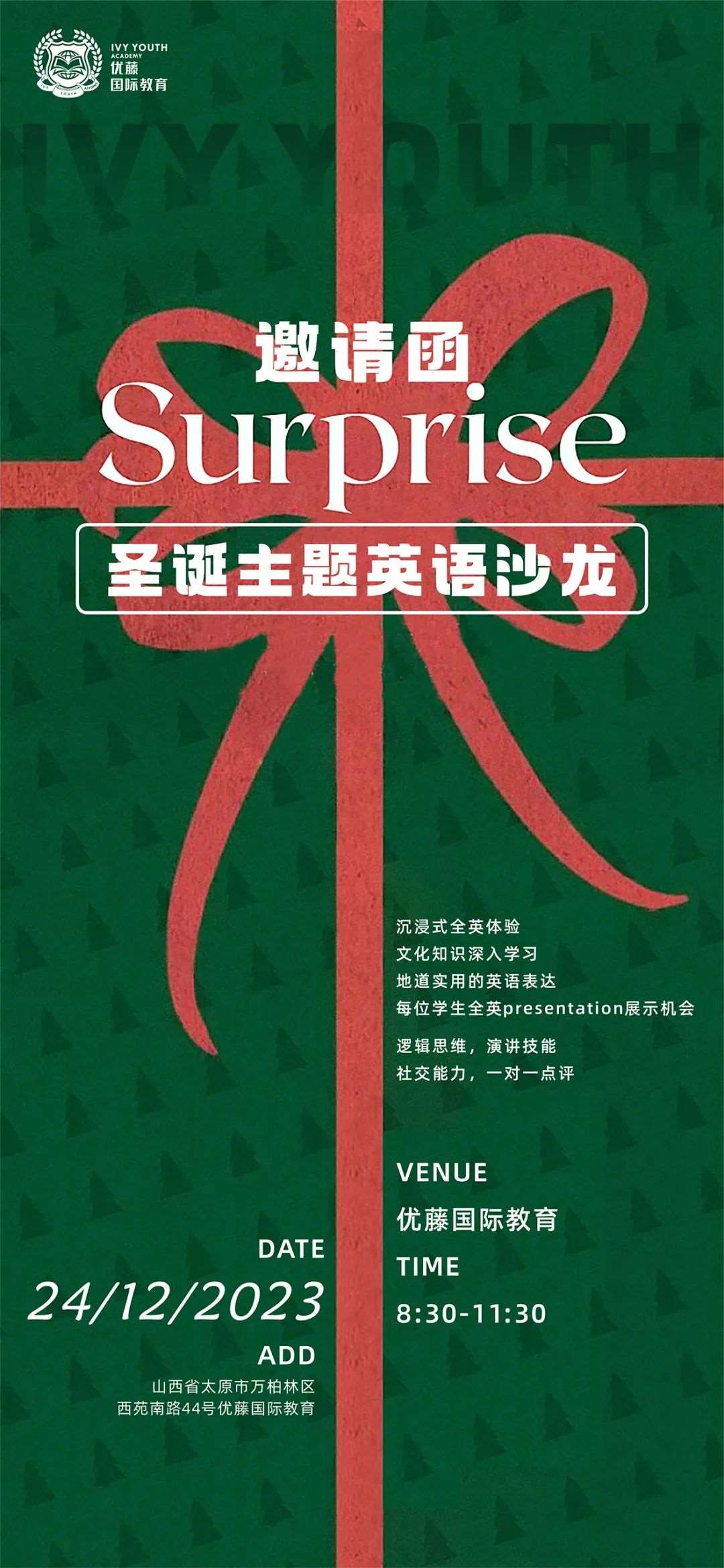 这个圣诞节,优藤将带领孩子们一起感受中西方多元文化、帮助孩子们获得不同的快乐情感体验,同时也为他们提供展示自我的平台。