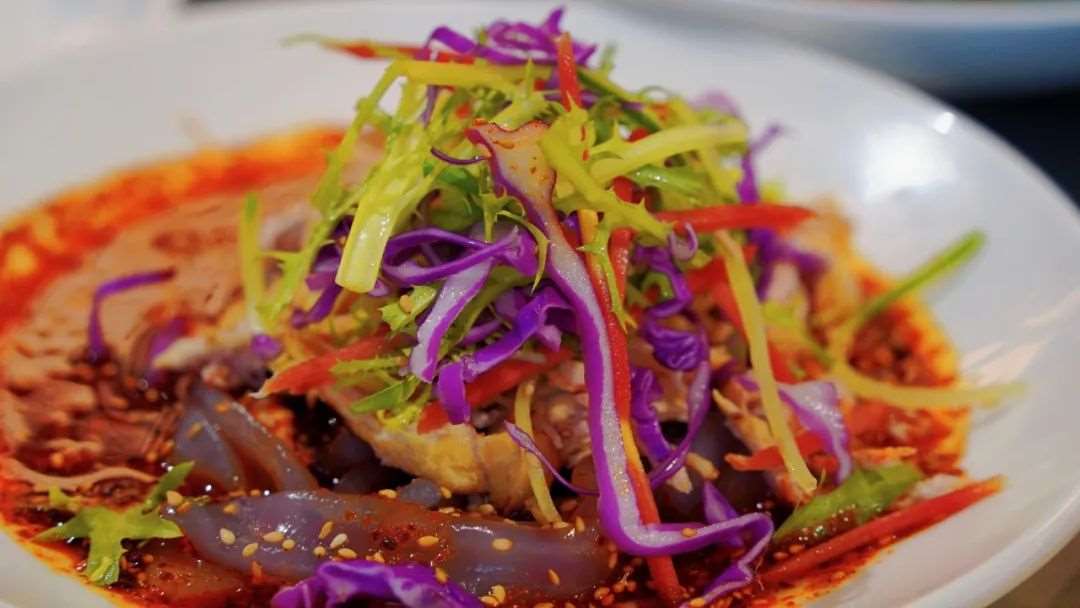 「凉皮」剔透禅意,冰凉如玉,油泼辣子和醋汁蒜水的味道组合,酸滑清爽。