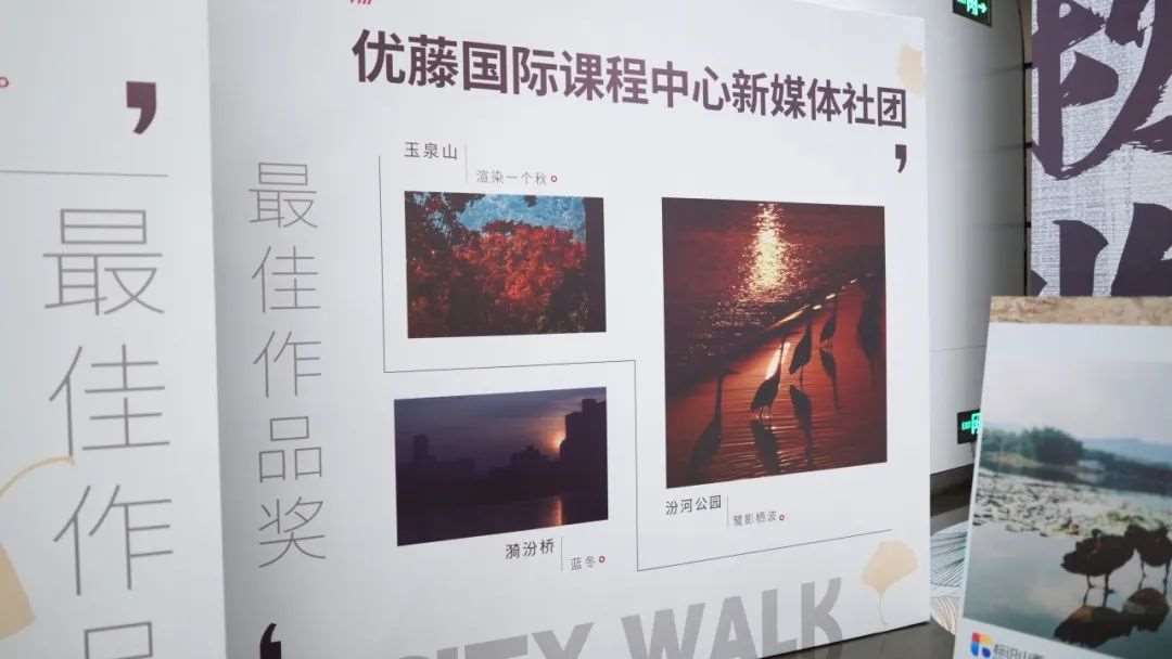 太原2号线的长风街地铁站活动空间内近日展出了优秀摄影作品,供乘客参观打卡。其中优藤国际课程中心新媒体社团同学们的作品获得了最佳作品奖,祝贺他们!