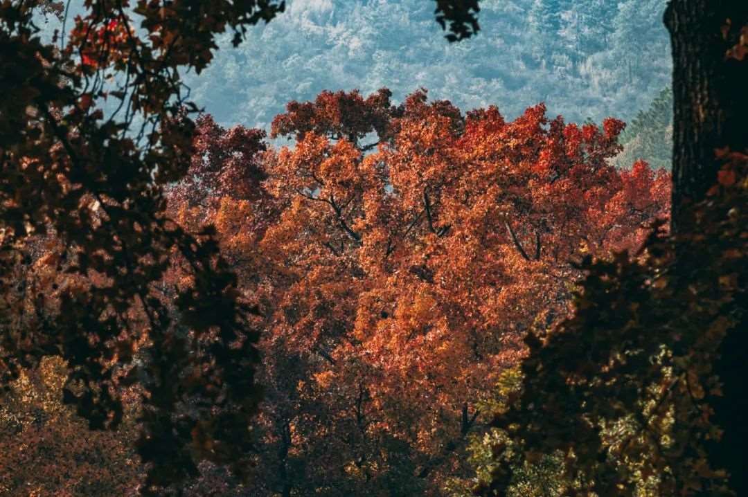 是汾河畔深秋笔下红黄橘绿的画卷,