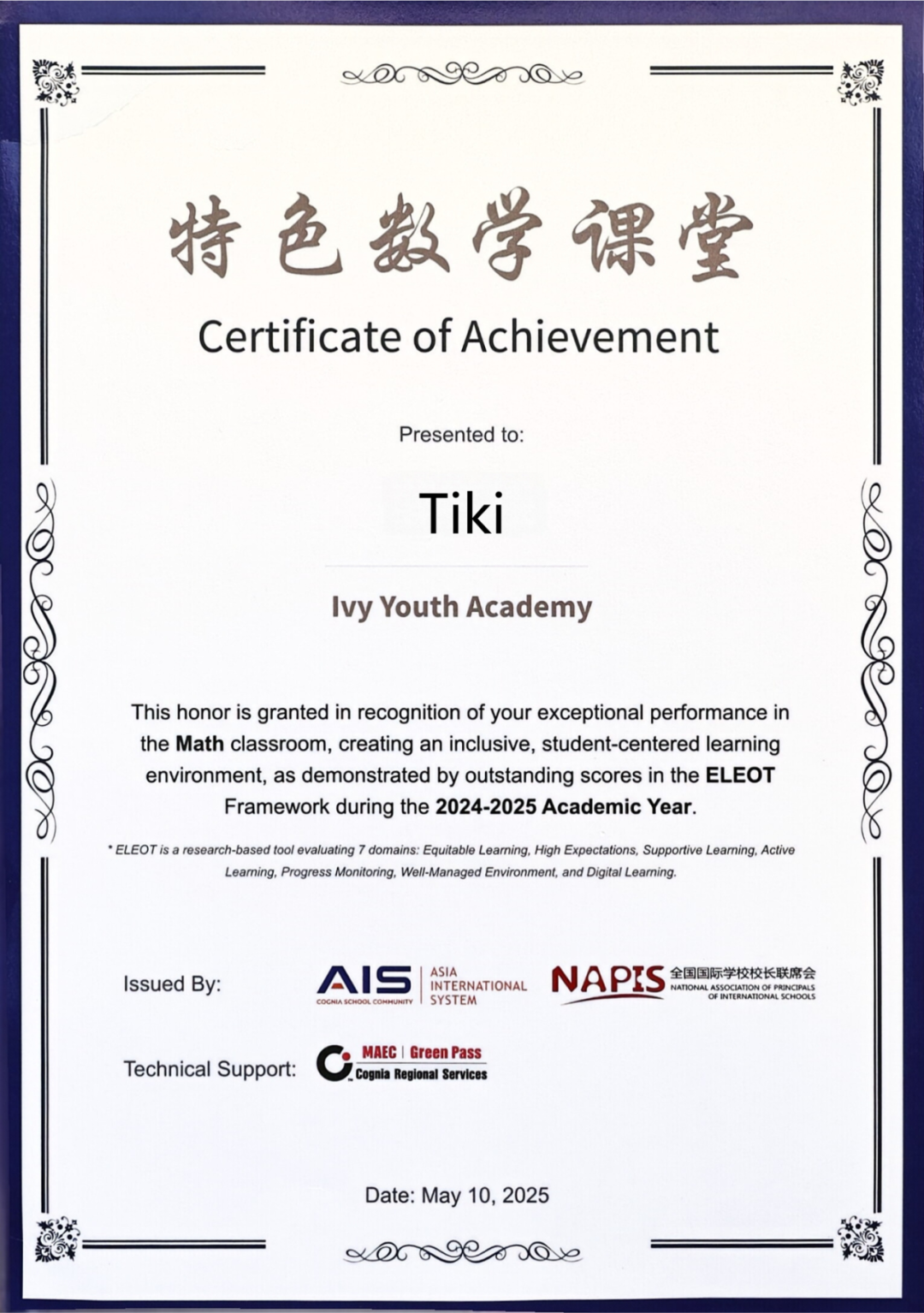 ● Tiki 老师荣获cognia授予:“杰出数学课堂”