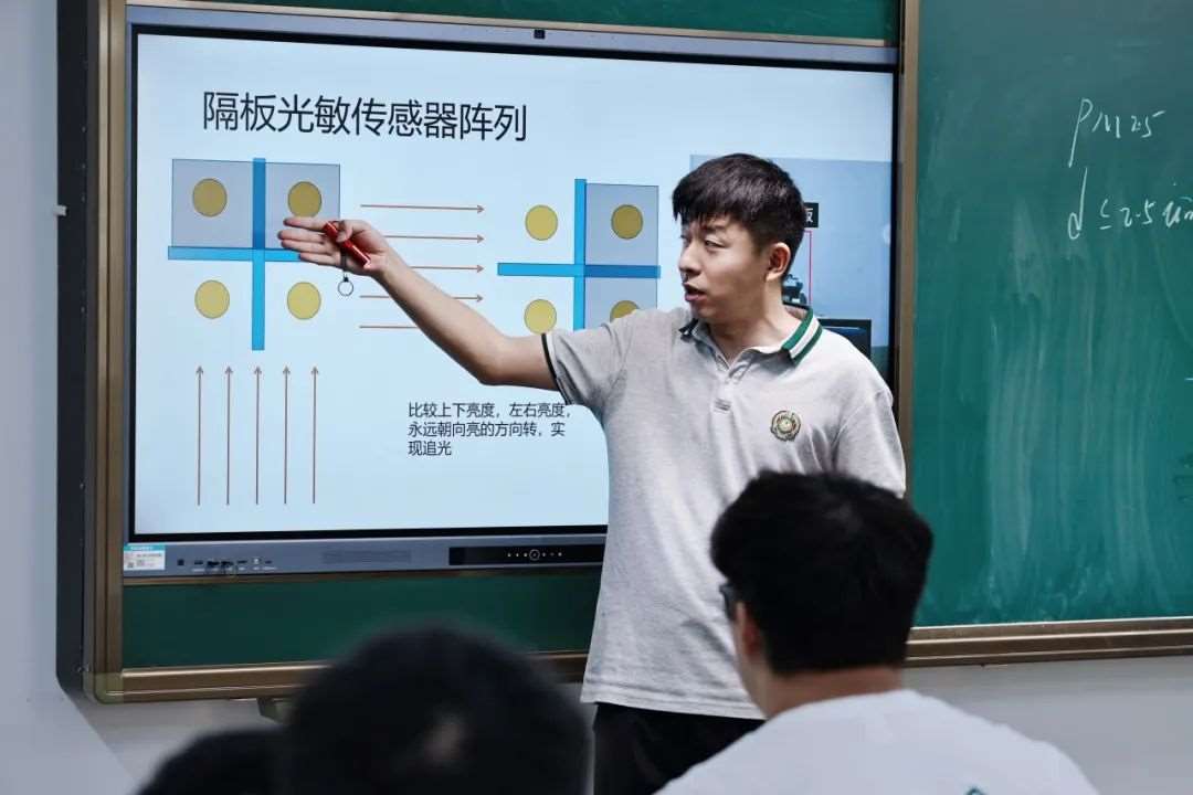物理创客工坊里,同学们化身“科创农夫”,在老师辅助下,尝试将光伏系统与智能灌溉耦合。螺丝刀的转动、电路的编程、传感器的调试,看似是物理与工程的实践,实则在搭建“科技赋能农业”的产业模型。当自己组装的光伏灌溉装置精准启动,科技的力量不再抽象,而是化作手可触及的产业变革势能。“科学技术,是破解农业发展桎梏的密钥。光伏板的倾角设计,要结合本地日照数据,这是工程学与地理学的融合!”